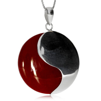 Stříbrný přívěsek s korálem - Kulatý jin-jang