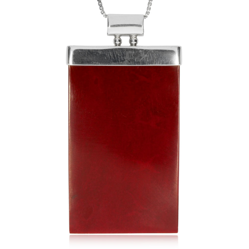 Stříbrný přívěsek - Obdélník z korálu v liště