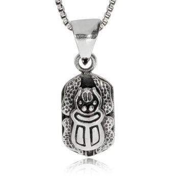 Malý stříbrný přívěsek se symbolem egyptského posvátného brouka - skarabea. Drobný šperk je vyrobenze stříbra o ryzosti 925/1000 a na povrchu je pokryt starostrříbrnou patinou. Máte-li rádi příběhy starého Egypta, tento šperk Vám vždy připomene jejich mystiku.
