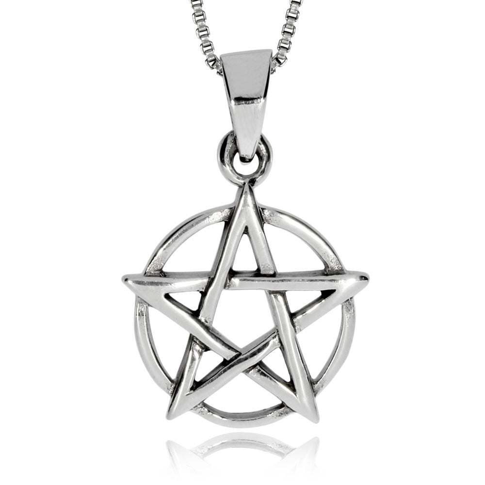 Menší stříbrný přívěsek s pentagramem, jehož cípy se prolínají a je orientován špicí nahoru. Takto postavený pentagram je ochranným symbolem dobra na rozdíl od pentagramu postaveného na špici. Přívěsek je vyrobez ze stříbra o ryzosti 925/1000 se starostříbrnou patinou.