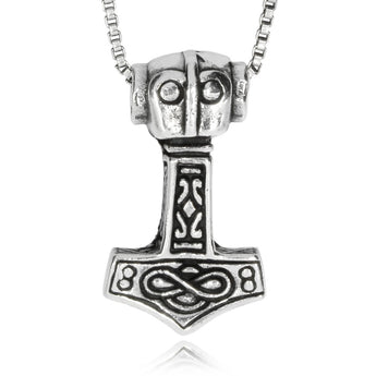 Menší stríbrný přívěsek s mystickým symbolem Thorova kladiva je vyrobený ze stříbra o ryzosti 925/1000. Povrch šperku je pokrytý starostříbrnou patinou, aby vynikl reliéf povrchového zdobení.