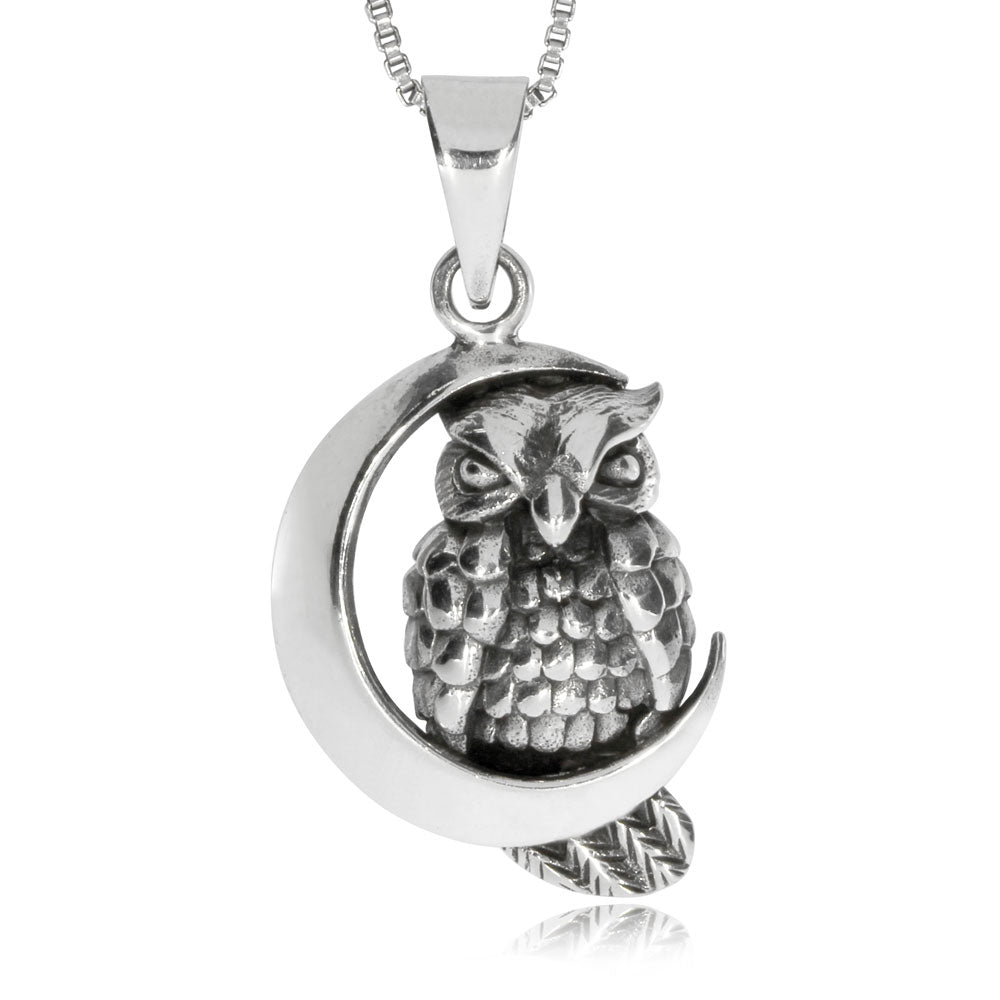 Stříbrný přívěsek - Sova s měsícem