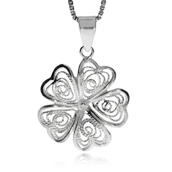 Stříbrný přívěsek ve tvaru květu z pěti srdcí