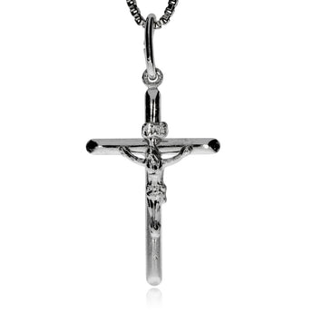 Pěkně zpracovaný přívěsek s křesťanským motivem plným víry a naděje. Kristus na kříži je vyrobený z kvalitního a dobře odolného rhodiovaného stříbra a svým charakterem i designem se dobře hodí pro muže i ženy.