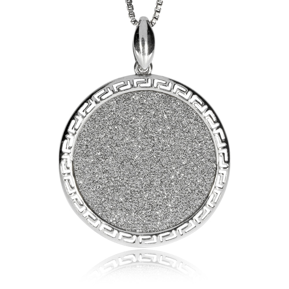 Stříbrný přívěse kulatý s řeckým motivem na okraji