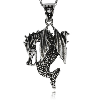 Drak je bájná bytost, která se vyskytuje napříč všemi kulturami. Draci vládli obrovskou silou a symbolizují proto ctižádostivost, vytrvalost a zaměření na úspěch. Tento pěkně zpracovaný přívěsek je vyrobený ze stříbra se starostříbrnou úpravou povrchu.