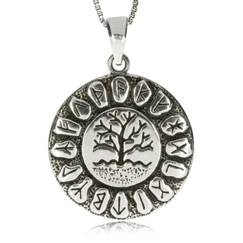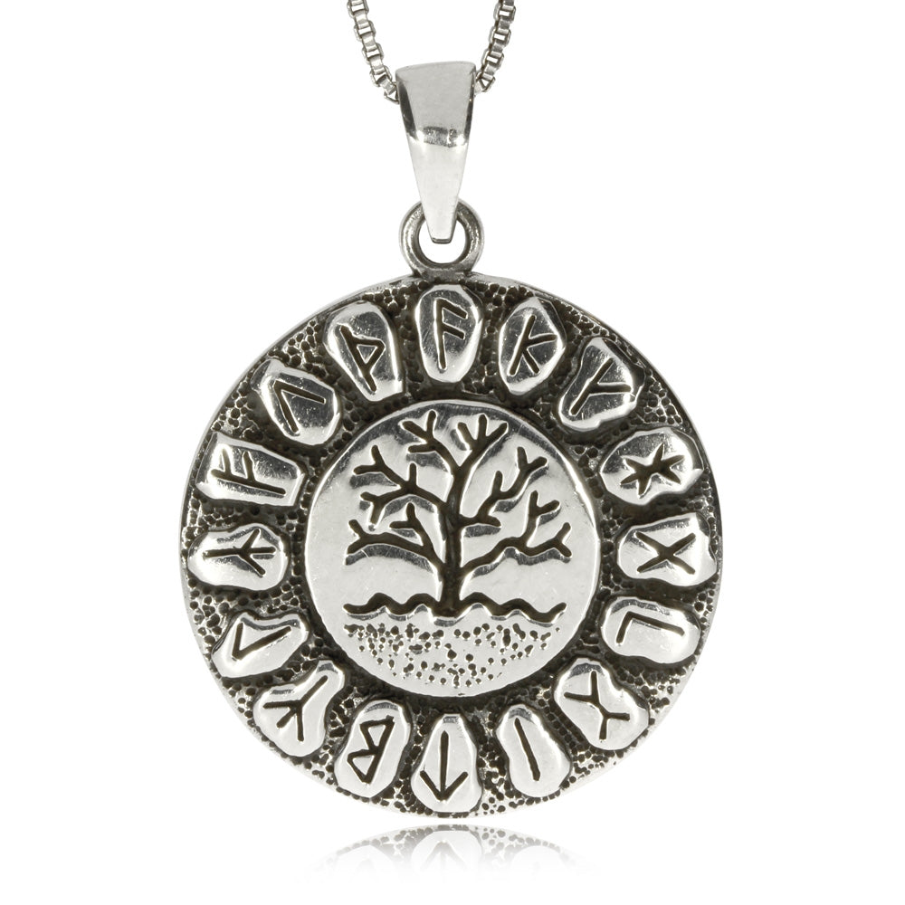 Stříbrný přívěsek - Strom života v kruhu s runami