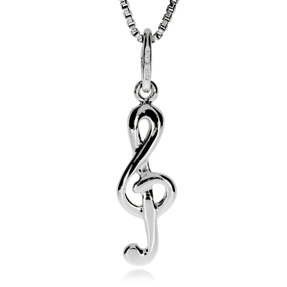 Velice pěkně zpracovaný přívěsek s jemným a ladným motivem houslového klíče. Houslový klíč otevírá notovou osnovu a jeho půvabná křivka působí velice zdobně. Přívěsek je vyrobený ze zářivého a krásně lesklého rhodiovaného stříbra.