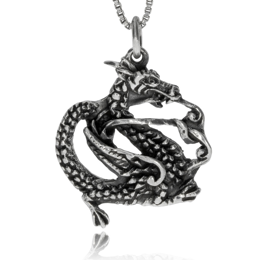 Velice zajímavě zpracovaný přívěsek s oblíbeným mytologickým motivem draka. Ten patří k velice oblíbeným symbolům, který se používal pro amulety a talismany. Představuje velkou moc, vytrvalost a sílu. Přívěsek je zpracovaný ve starostříbrné povrchové úpravě.