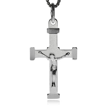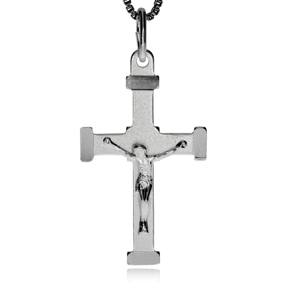 Drobný a krásně zpracovaný přívěsek zobrazuje Ježíše na kříži, nejznámější křesťanský symbol a odvěký motiv plný pokory, odkazu k Bohu a spojení. Celá plocha kříže se díky rhodiovanému stříbrnému povrchu krásně leskne, vytváří tak zajímavý konstrast k Ježíšovu tělu a jemný zdobný efekt.