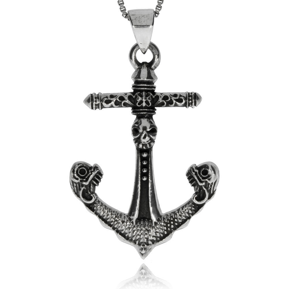Kotva je prastarým symbolem naděje a splněných přání. Tento zajímavě zpracovaný přívěsek ve tvaru kotvy navíc zdobí lebka a jemná povrchová textura, která dobře vyniká ve starostříbrné úpravě.