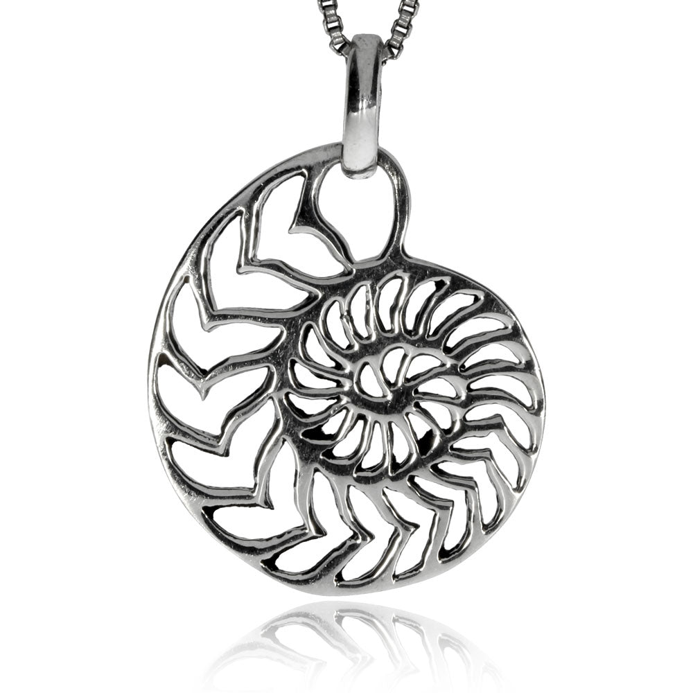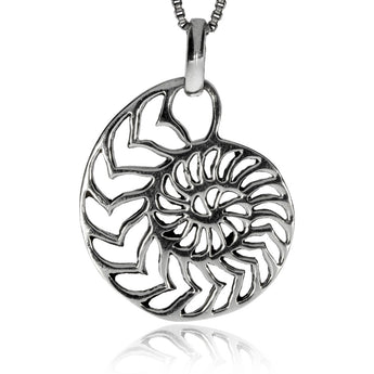 Velice pěkně zpracovaný přívěsek, který v sobě spojuje jemný design a nápaditý motiv. Přívěsek vyobrazuje ulitu amonita, hlavonožce z období druhohor. Ulita byla v mnoha kulturách zobrazována pro svůj tvar, který odkazuje na spirálu, základní motiv, který symbolizuje život a neustálý růst. Přívěsek je vyrobený ze stříbra se starostříbrnou úpravou.