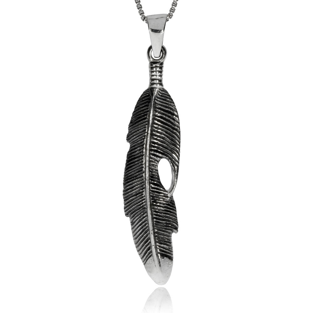 Originálně zpracovaný přívěsek s jednoduchým a pěkně propracovaným motivem indánského pírka. Přívěsek je vyrobený ze stříbra s povrchovou starostříbrnou úpravou a svým designem i charakterem se hodí jak pro muže, tak pro ženy.