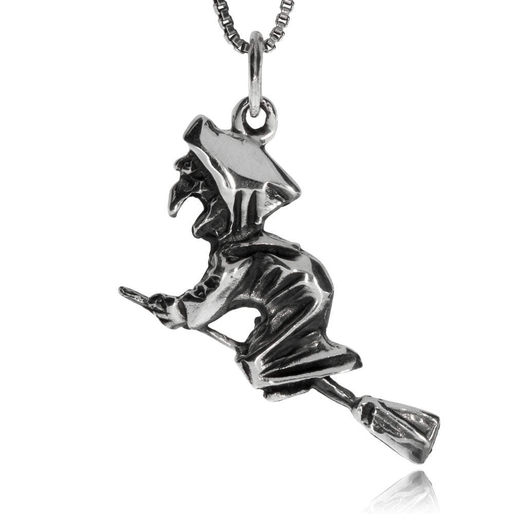 Pěkně zpracovaný a velice netradiční motiv na tomto přívěsku představuje čarodějku, mocnou bájnou bytost, která ovládala kouzla a umění magie. Přívěsek je vyrobený ze stříbra se starostříbrnou povrchovou úpravou.