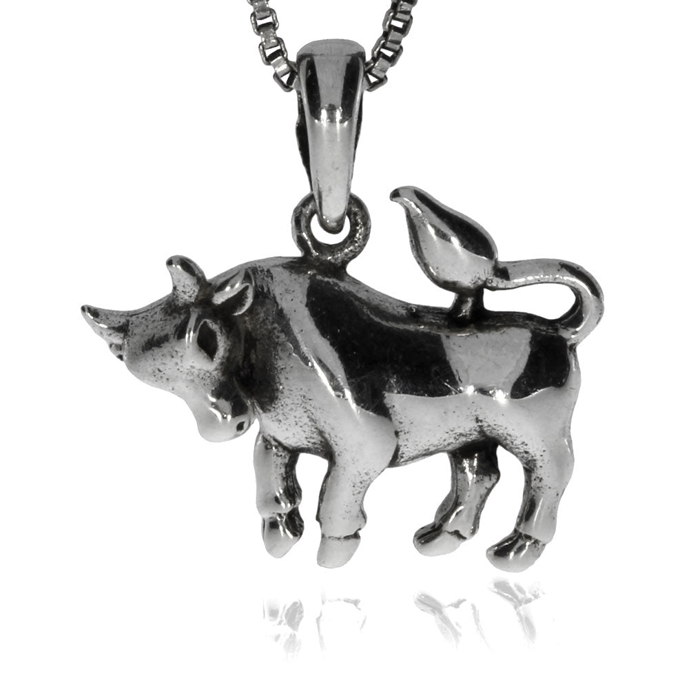 Krásně zpracovaný přívěsek, který nemusí zdobit jen ženy a muže narozené ve znamení Býka. Býk představuje silné a rozhodné zvíře a podle některých tradic dodává pevnou vůli. Přívěsek je vyrobený ze zářivého leštěného stříbra.