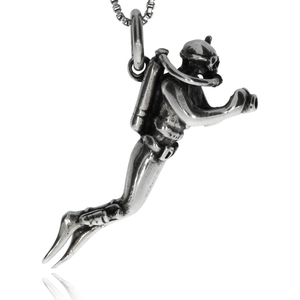 Velmi zdařilý přívěsek potapěče je vhodným dárkem pro přítele, který se rád věnuje tomuto sportu. Přívěsek je poměrně velký a těžký a proto je třeba jej zavěsit na silnější řetízek.