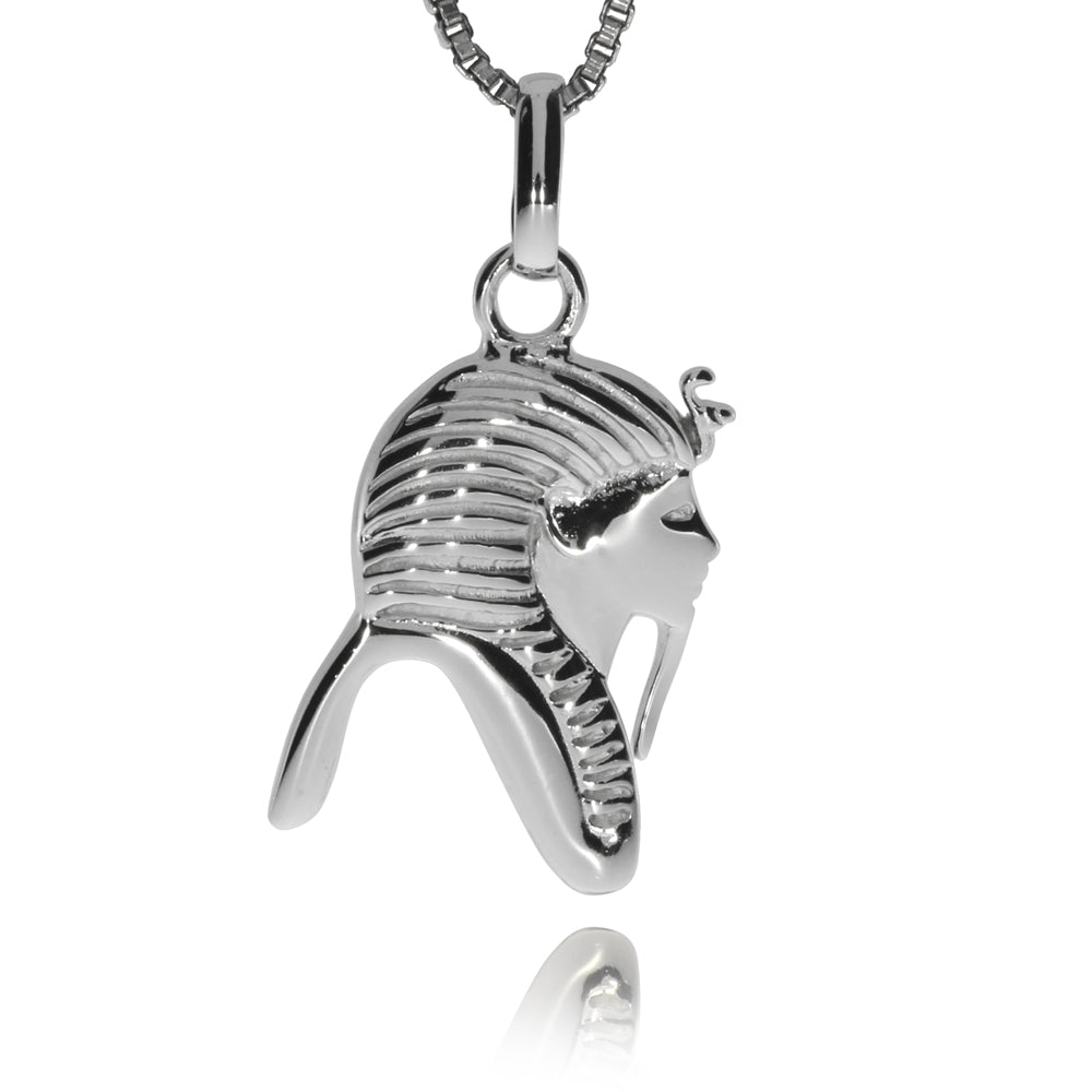 Faraon, vládce ve starověkém Egyptě, mocný potomek bohů a symbol nekonečné moci, se stal zároveň motivem představujícím vznešenost a eleganci. Tento krásný a do detailů skvěle propracovaný dámský přívěsek s motivem faraona je vyrobený ze zářivého a lesklého rhodiovaného stříbra.