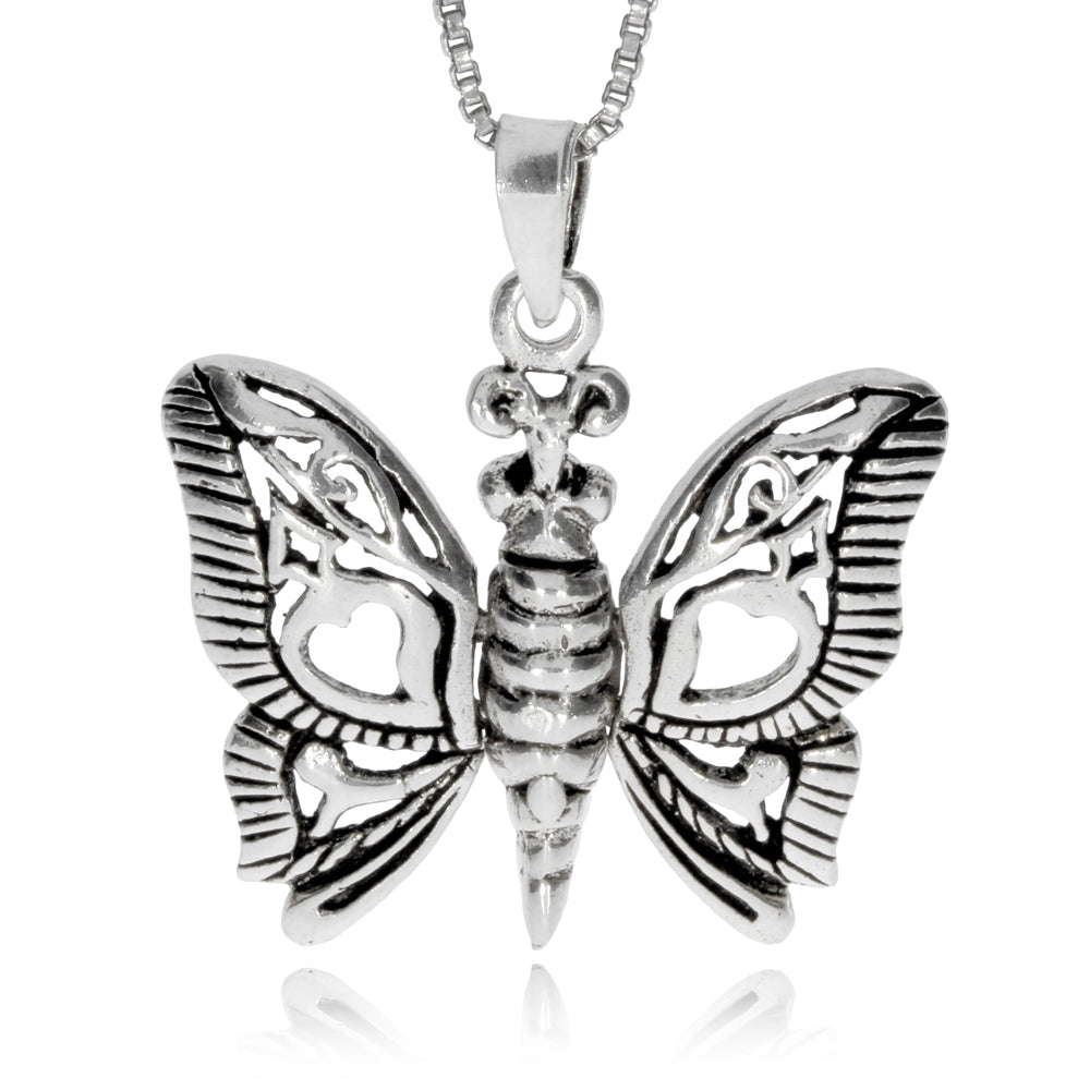 Originálně zpracovaný přívěsek s jemným a romantickým motivem motýla. Motýl se používá jako symbol odkazující na přeměnu housenky. Přívěsek je vyrobený ze stříbra se starostříbrnou povrchovou úpravou, ve které skvěle vyniká zdobení křídel.