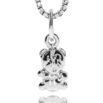 Roztomilý a krásně zdrobný dětský přívěsek s hravým a dobře zpracovaným motivem plyšového medvídka. Přívěsek je vyrobený ze zářivého a krásně lesklého rhodiovaného stříbra.