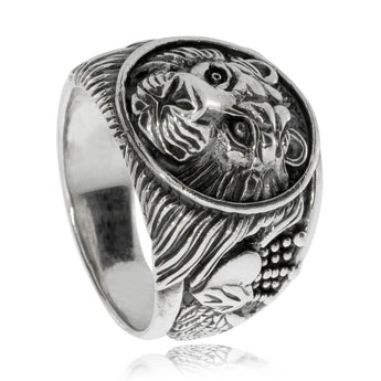 Prsten ze stříbra o ryzosti 925/1000 s patinovaným povrchem. Výrazný motiv prstenu - hlava lva - je plastický a nepřehlédnutelný na ruce muže nebo i ženy, která dává přednost takto zpracovaným šperkům.