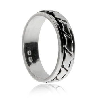 Zdvojený stříbrný prsten s otáčivým středem je oblíbený u mužů i u žen. Tento vzor s jemnými vlnkami je skutečně univerzální.