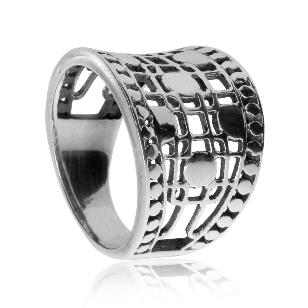 Střítrný prsten - Širší vzor s mřížkou
