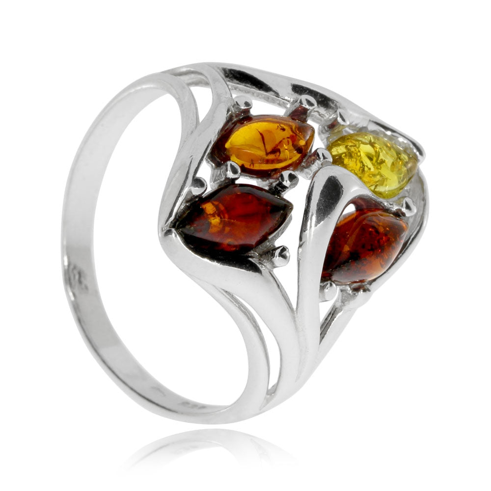 Stříbrný prsten s jantarem - Čtyři barvy jantaru