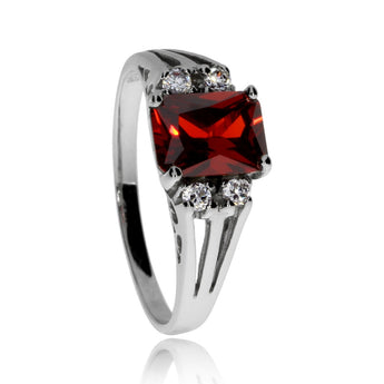 Stříbrný prsten se zirkony (cubic ziconia) červený obdélník v rhodiovaném povrchu