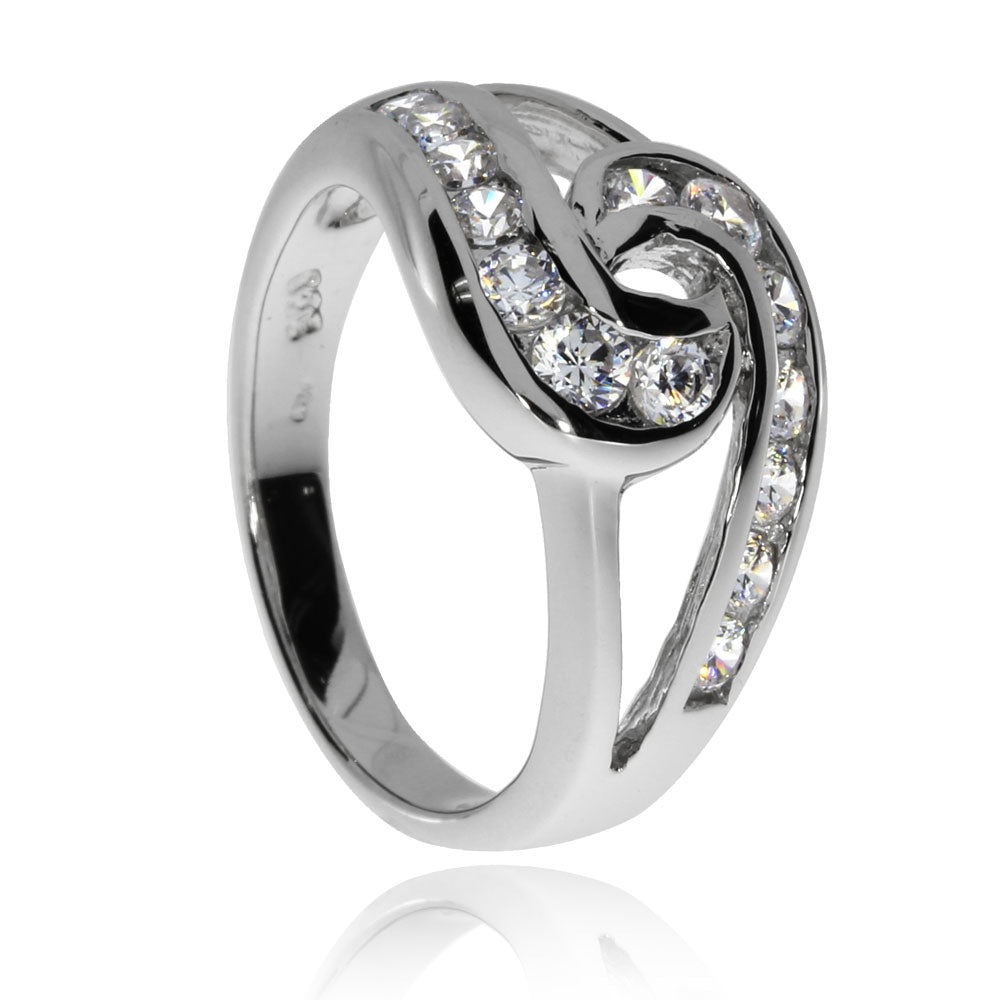 Stříbrný prsten se zirkony (kubická zirkonie) v motivu propletené vlnky