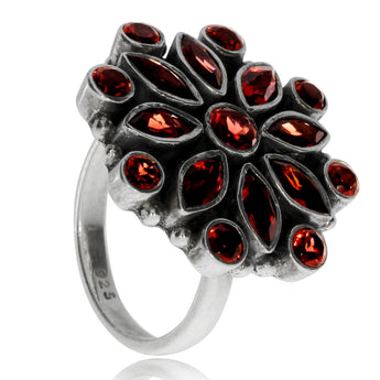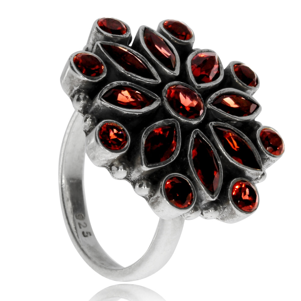 Stříbrný prsten s granáty - Kameny ve tvaru květiny