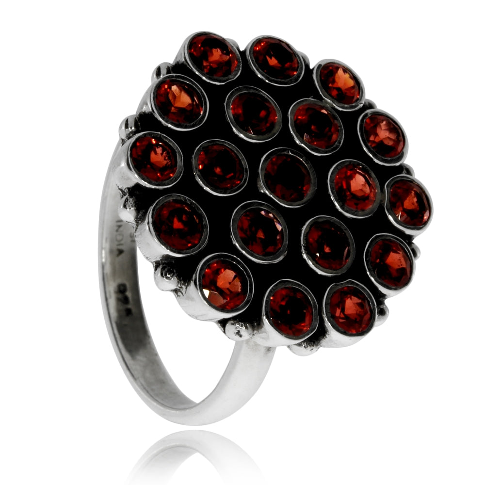 Stříbrný prsten s granáty - Kulaté uspořádání