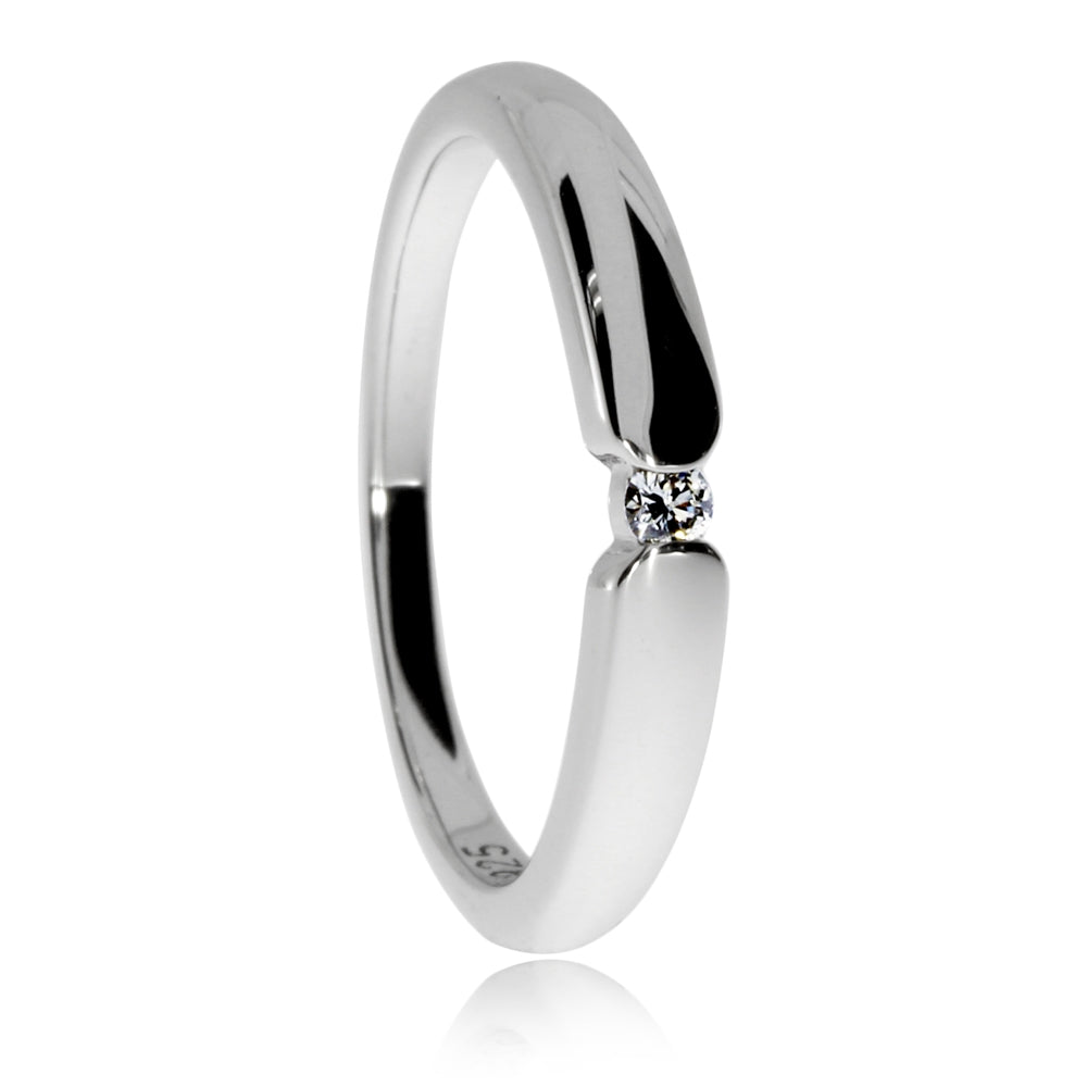 Stříbrný prsten s diamantem - 0,03 ct, SI1/G, průměr 2 mm