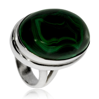 Stříbrný prsten s malachitem - Velký kámen ve tvaru oválu