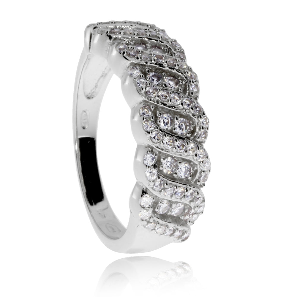 Stříbrný prsten se zirkony (kubická zirkonie), třpytivá spirála