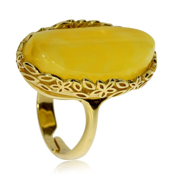 Stříbrný zlacený prsten s jantarem žluté barvy