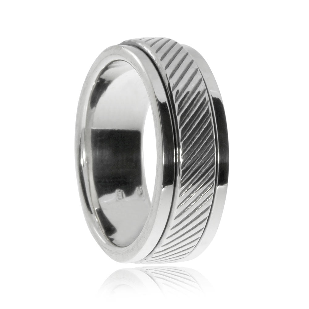Prsten ze stříbra o ryzosti 925/1000 je ozdoben jemným rýhováním na otáčivém kroužku. Prsten je vhodný pro ženy a muže.