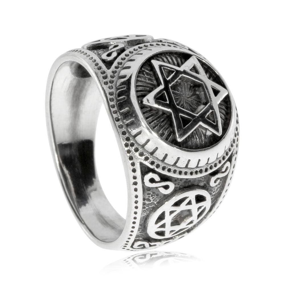 Stříbrný prsten - Šesticípá hvězda v kruhu