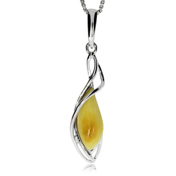 Stříbrný přívěsek - Mléčně žlutý jantar ve zdvojené linii