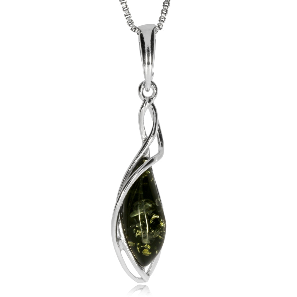 Stříbrný přívěsek s nazelenalým jantarem ve zdvojené linii