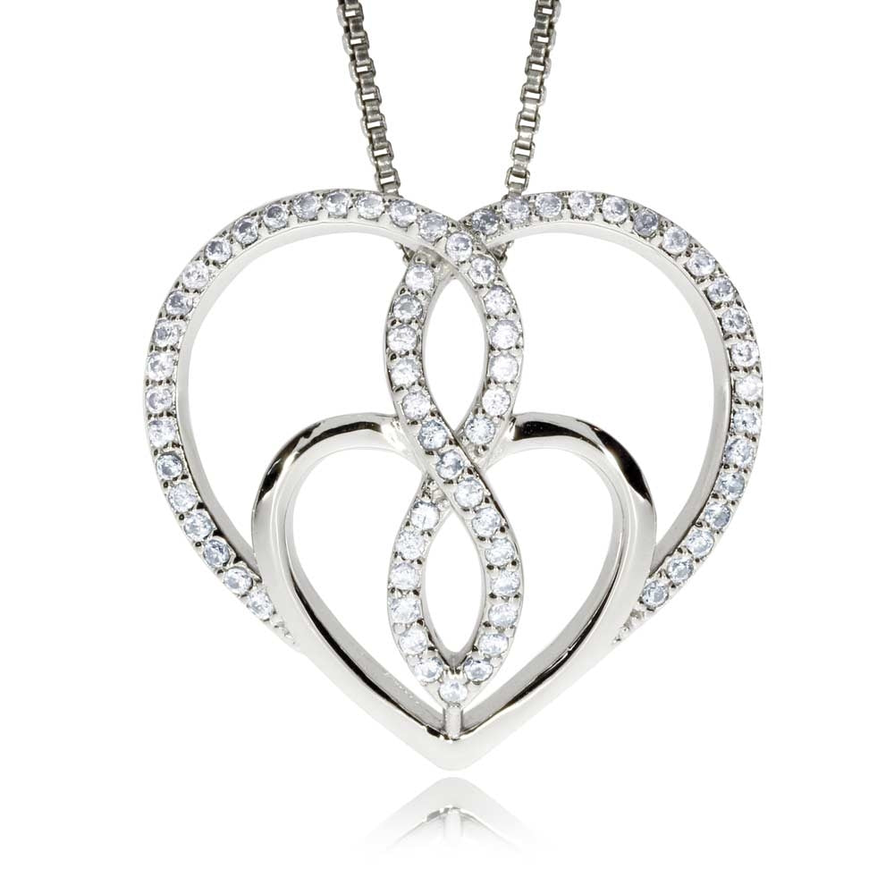 Stříbrný přívěsek - Srdce dvojité se zirkony (cubic zirconia