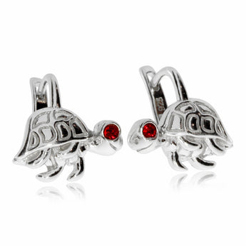 Dětské stříbrné náušnice - Želvy s červeným kamínkem
