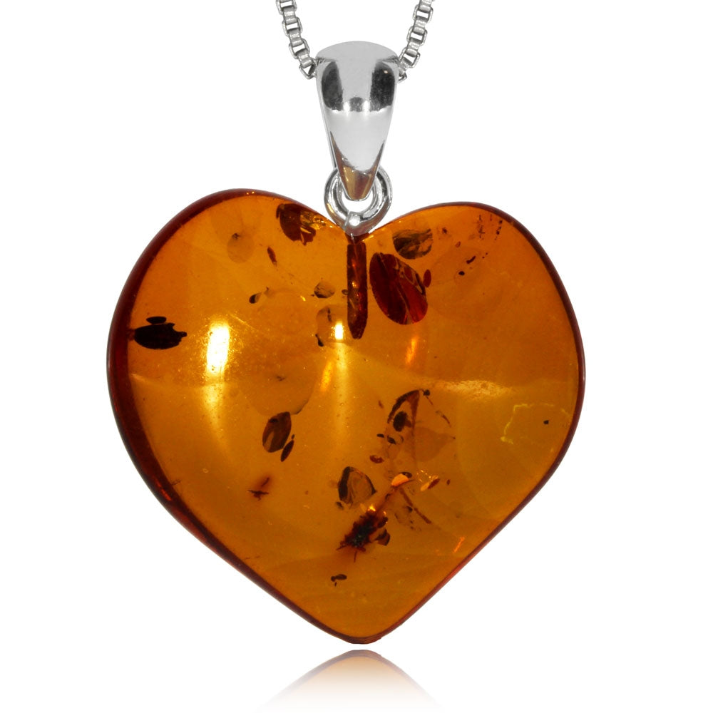 Jantarový přívěsek se stříbrným úchytem Srdce