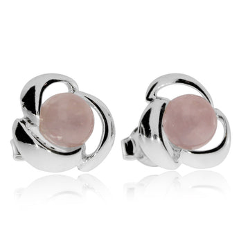 Stříbrné náušnice - Kulaté kytičky s růženínem