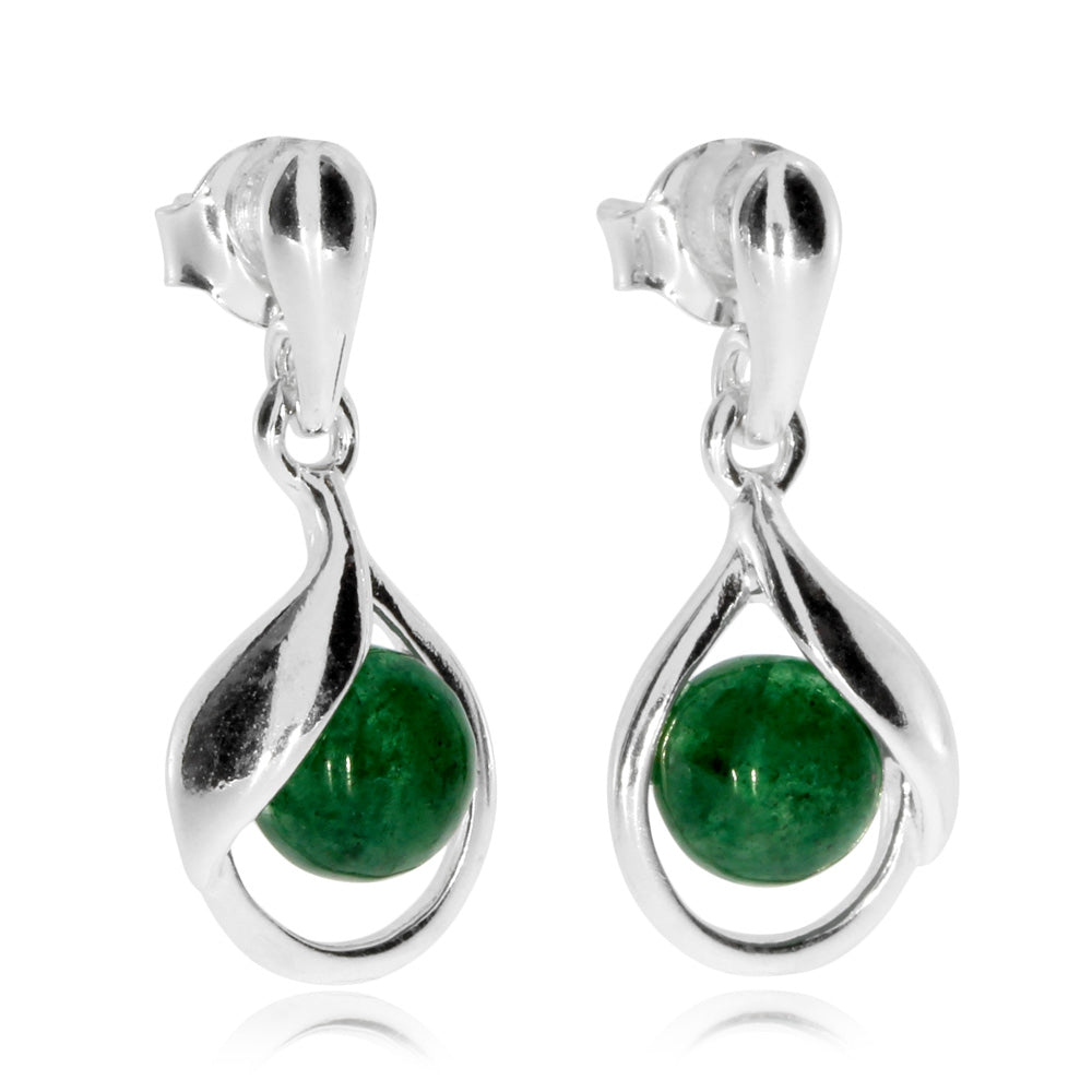 Dámské stříbrné náušnice s výrazně zeleným leštěným kamenem v ozdobném přívěsku se hodí pro každodenní nošení. Kombinace leštěného stříbra se zelenou barvou přírodního kamene může být působivým doplňkem oblečení. Náušnice mají zapínání na puzetu a přívěsek je pohyblivý.