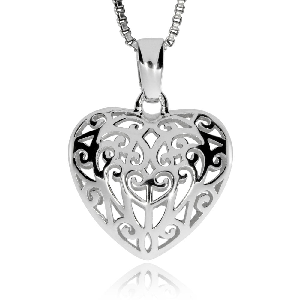 Stříbrné srdíčko z jemných stříbrných smyček je vypouklé a z obou stran stejné. Tento půvabný šperk rozjasní každý den, kdy se jím ozdobíte. Srdíčko z rhodiovaného stříbra se skvěle leskne a je to nepochybně i velmi dobrý tip na dárek.
