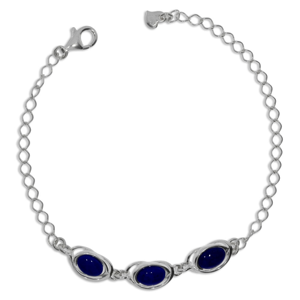 Stříbrný náramek se třemi kameny lapisu lazuli