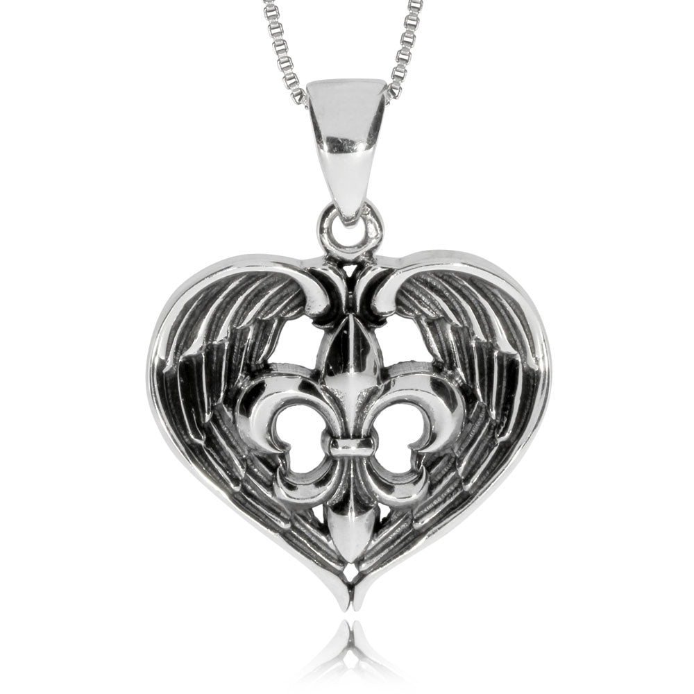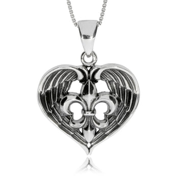 Přívěsek ze stříbra s dvěma silnými motivy - to je srdce a lilie jako symbol čistoty a vznešenosti. Masívní, více než 11 gramů vážící šperk je vyroben ze stříbra o ryzosti 925/1000 se starostříbrnou patinou. Díky této úpravě vynikne každý detail tohoto zajímavého přívěsku. Očko o navěšení je dostatečně velké na to, aby jím prošel i silnější řetízek nebo kaučukový návlek. Šperk se bude velmi pěkně vyjímat na jednobarevném podkladu oblečení nebo přímo na pokožce.
