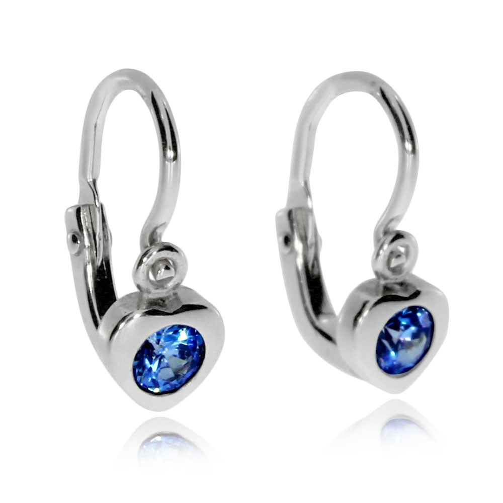 Dětské stříbrné náušnice - Srdíčka s modrým kamínkem
