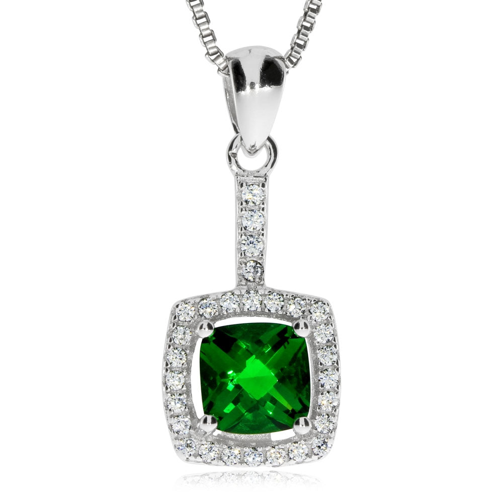 Elegantní stříbrný přívěsek pro ženy se třpytí drobnými kamínky čiré kubické zirkonie, které lemují větší čtvercový kámen zelené barvy. Syntetický kámen má výraznou barvu smaragdu, která se velmi dobře vyjímá ke světlému i tmavému oblečení.