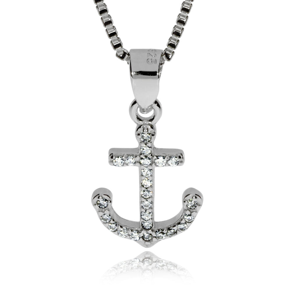 Stříbrný přívěsek - Malá kotvička se zirkony (CZ